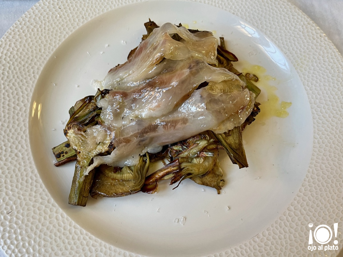 Mientras tengan este plato en la carta lo pediré siempre. Alcachofa plancha con papada ibérica.