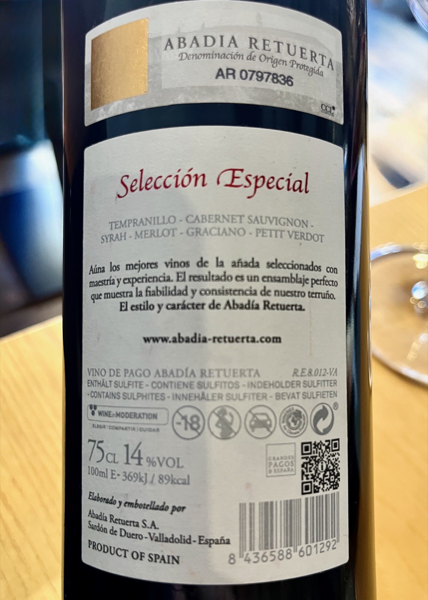 El Abadía Retuerta Selección Especial es el vino estandarte de la bodega vallisoletana del mismo nombre. Selección Especial es el primer vino de Abadía Retuerta, en el que se seleccionan y se mezclan los mejores vinos de la añada que provienen de la vinificación por separado de los 54 pagos en los que se ha clasificado la viña de la bodega. Se elabora principalmente con la variedad nativa del valle del Duero, el tempranillo, y se complementa con otras variedades de la finca que se escogen por cata. La finalidad es equilibrar las particularidades de la añada y preservar el estilo que caracteriza a este vino. Selección Especial es un fiel reflejo de la añada, el terruño y la personalidad de Abadía Retuerta. La Selección Especial 2020, producida con Tempranillo, Cabernet Sauvignon, Syrah, Merlot, Graciano y Petit Verdot, es armoniosa y moderadamente madura con 14% de alcohol, con un bonito frescor equilibrado. |