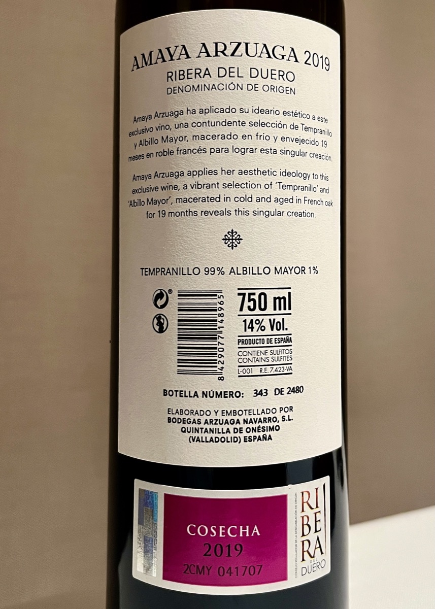 Tempranillo 99% y Albillo Mayor 1%. Uvas procedentes de centenarios viñedos prefiloxéricos de la Ribera del Duero ubicados en suelos de características suplementarias (terrenos de piedras areniscas y aluvión complementados con terrenos calizos a elevadas altitudes) ensamblan sus mejores cualidades consiguiendo un espectacular resultado. La uva siempre va a llegar a bodega en cajas de 10-15 kg, una vez vendimiada con una selección exhaustiva. El momento de dicha recolección nos lo va a marcar los diferentes índices de maduración realizados, hasta encontrar el momento exacto para ello. Después de una segunda selección ya en bodega, los racimos, siempre enteros, con su propio raspón, van a ser depositados cuidadosamente en una cuba de roble francés de 5000 l. de capacidad. Diariamente se realiza un ligero pisado antes del inicio de la fermentación alcohólica. Tras el comienzo de la fermentación, además del pisado de racimos se realizan los bazuqueos oportunos. 18 días después del encubado, se descubó y se introdujo el vino en 15 barricas nuevas de roble francés de diferentes bosques, para lograr la complejidad aromática que le caracteriza; la estancia en barrica se prolongó desde mediados de noviembre de 2019 hasta agosto de 2021, cuando el vino fue embotellado. |
