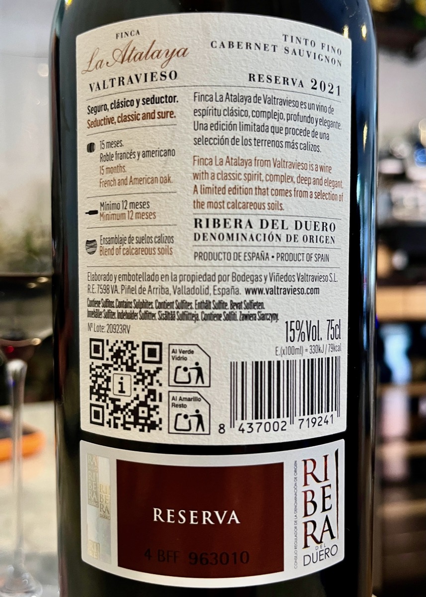 | Otros datos | Valtravieso es una bodega dinámica que combina además la tradición con los procesos de producción más avanzados. Sus vinos están elaborados mayoritariamente con uvas de tempranillo (o tinta fina), con pequeños aportes de cabernet sauvignon y merlot que enriquecen su complejidad, vinos que reflejan la singularidad de la región pero que se distinguen con su personalidad diferenciada. Valtravieso Reserva es uno de sus mejores vinos, en el que sus taninos poderosos han sido domados ofreciendo una fantástica redondez y dulzura, gracias a esa combinación de altitud, clima, suelo y un cuidado meticuloso. Un vino de brillo intenso y excelente capa, con unos deliciosos aromas de frutas negras, como ciruela y morta, tabaco y cedro, que invaden la nariz, un conjunto lleno de sensualidad con un fondo mineral que remarca todavía más su carácter. Equilibrado y fresco, con buen cuerpo, amplio y con un largo final. |
