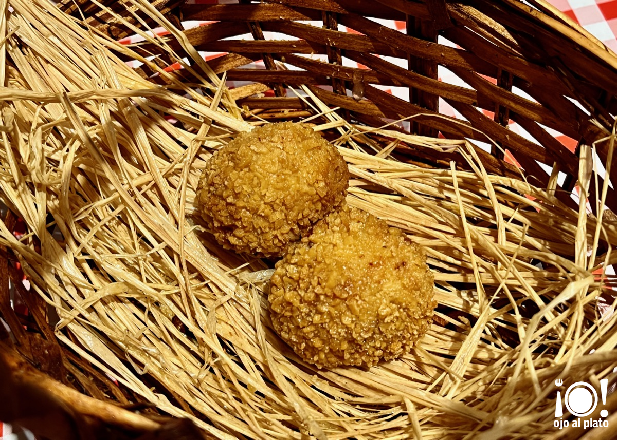 "Croqueta de conejo al ajillo". Dudo que hayas probado una croqueta como esta, lo digo en el amplio sentido de la frase, primero por su composición, yo al menos nunca había tomado una croqueta de conejo al ajillo, después porque estaba muy crujiente por fuera y cremosa por dentro. Perfecta la ejecución.