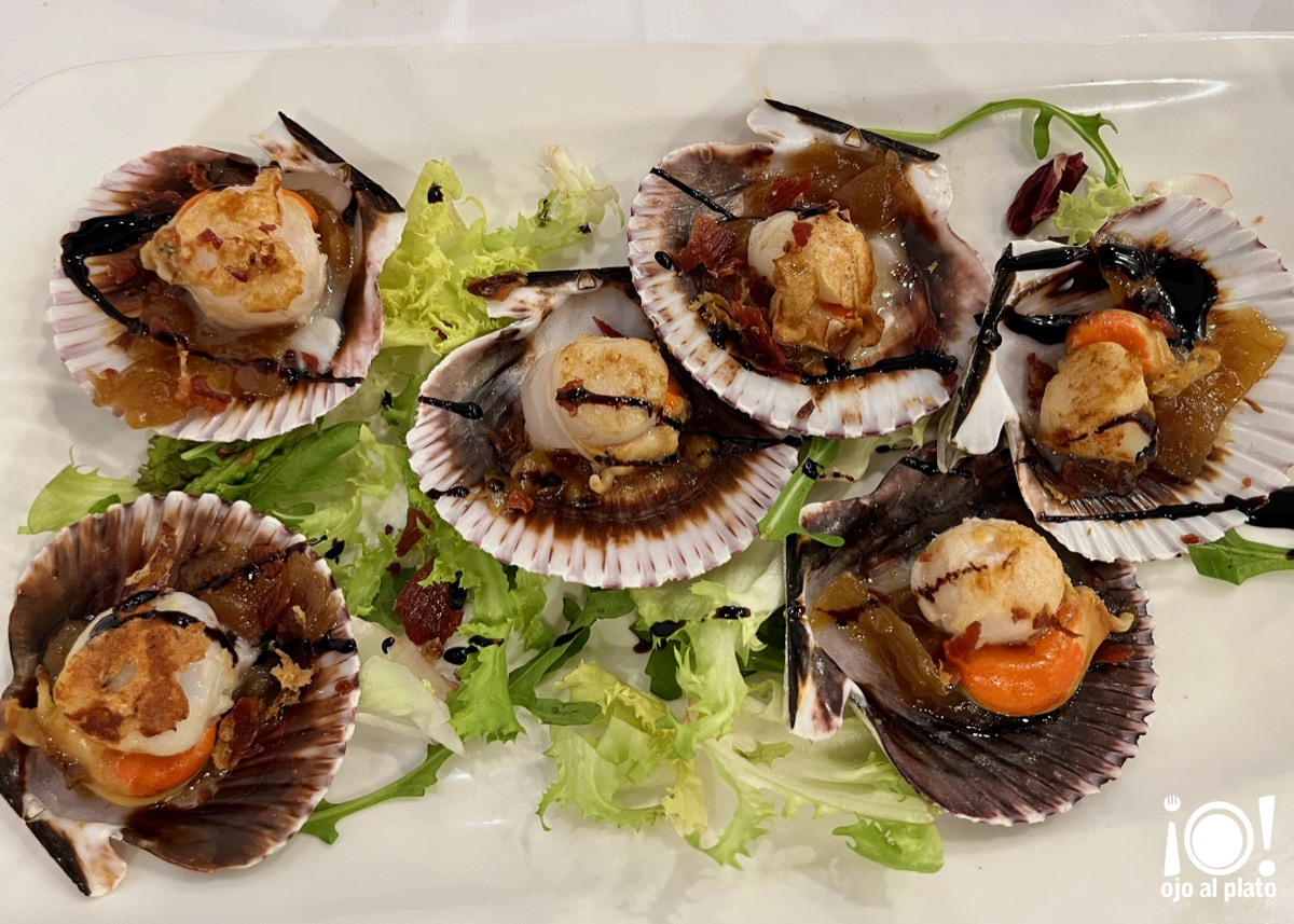 Continuamos con unas buenas zamburiñas con cebolla caramelizada y rustido ibérico, a las que le sobraba la crema de vinagre balsámico, por lo demás fantásticas.