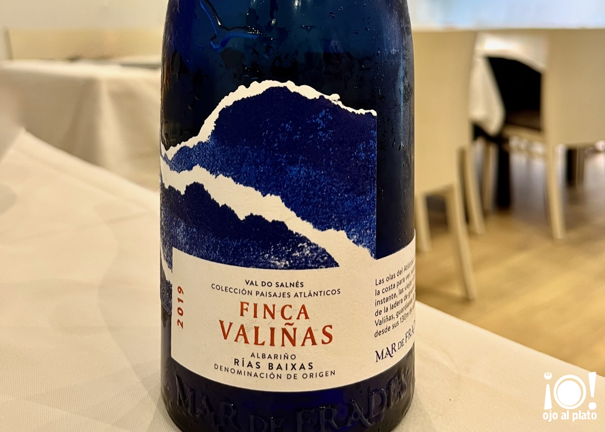 El vino que tomamos fue este Finca Valiñas 2019, es un monovarietal de Albariño elaborado en la subzona de O Val do Salnés al amparo de la D.O. Rías Baixas por la bodega Mar de Frades. Es un vino blanco con fermentación y posterior crianza en barricas y depósitos inoxidables de 3 y 5 meses respectivamente, para terminar la misma en barricas de roble francés durante 6 meses más, lo que permite tener en la copa un vino muy varietal, lo que eso supone en los albariños (frescura, fruta, salinidad), junto a una interesante complejidad que le da el aporte de la madera. Espectacular.