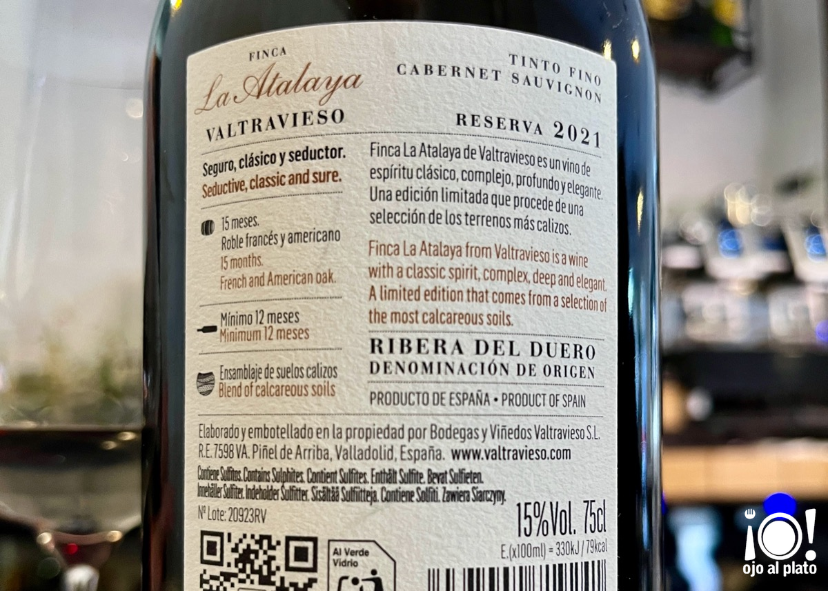 Valtravieso Reserva Finca La Atalaya es uno de los mejores vinos de esta bodega, en el que sus taninos poderosos han sido domados ofreciendo una fantástica redondez y dulzura, gracias a esa combinación de altitud, clima, suelo y un cuidado meticuloso. Un vino de brillo intenso y excelente capa, con unos deliciosos aromas de frutas negras, como ciruela y mora, tabaco y cedro, que invaden la nariz, un conjunto lleno de sensualidad con un fondo mineral que remarca todavía más su carácter. Equilibrado y fresco, con buen cuerpo, amplio y con un largo final.