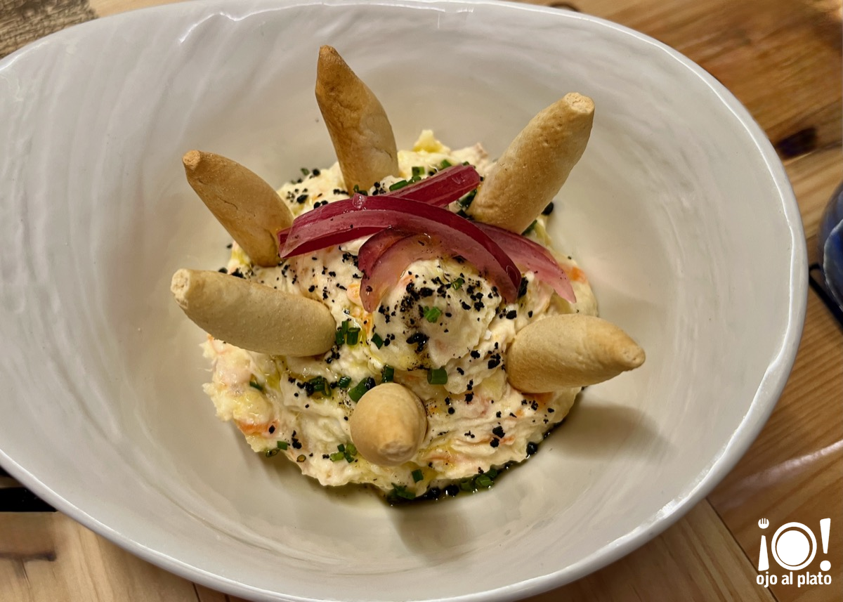 Ya no vendrás aquí solamente por los vinos, aunque sigue siendo una magnífica motivación, si no porque progresivamente la carta de platos está siendo más amplia y apetecible. Hay bastante y bueno para elegir. Está fuera de discusión que los bares de vinos son una buena opción para ir a disfrutar de la bebida favorita de muchos aficionados, pero viene muy bien que exista una amplia oferta para acompañarlos y aquí se cumple esa premisa. Por ejemplo con la ensaladilla, un plato omnipresente en las cartas de todos los restaurantes, pero imprescindible, y si está buena, como esta, mejor todavía.