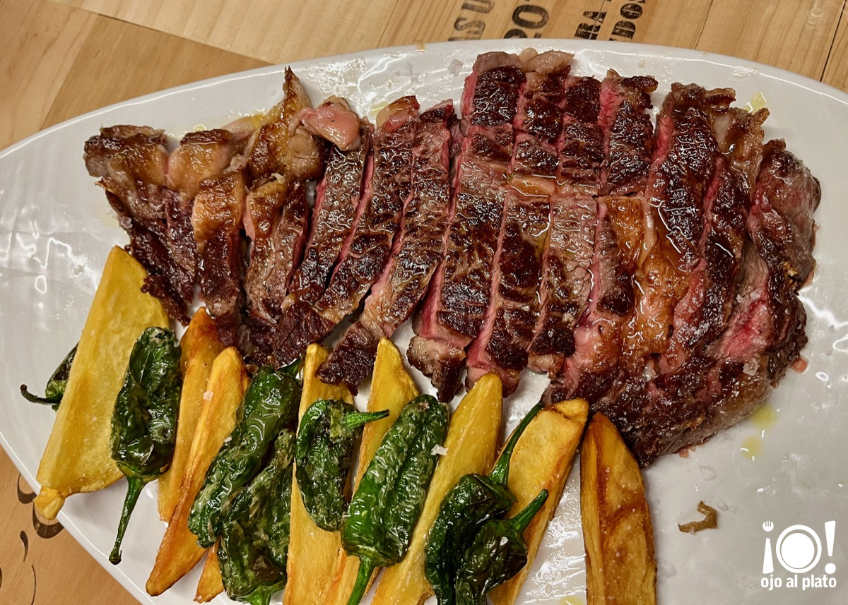 Para finalizar este "Lomo alto de vaca rubia gallega con patatas y pimientos de Padrón". Tierno como la mantequilla y muy gustoso. Buena carne.