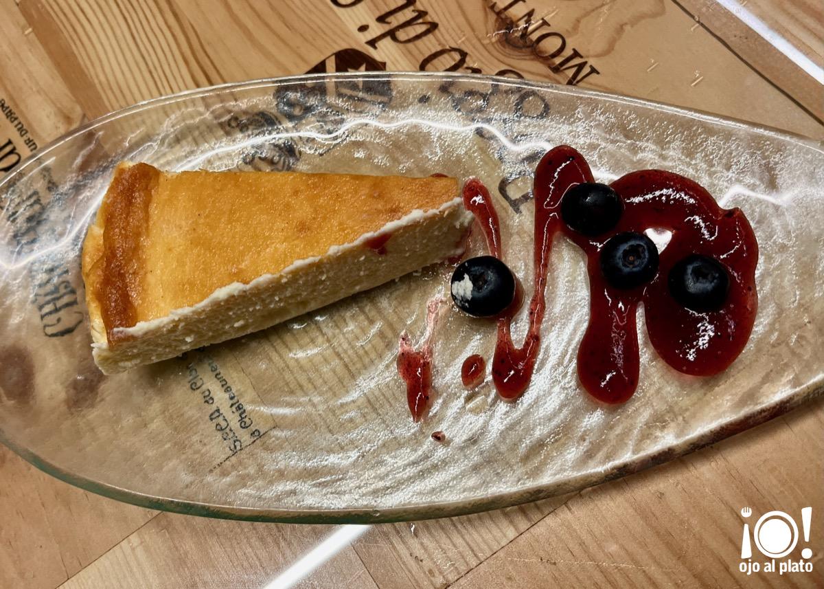 Como éramos siete a la mesa pudimos probar varios de los postres de la casa, como esta estupenda "Tarta de queso" algo diferente ya que le han añadido un poco de queso de cabra.