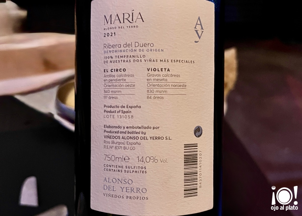 María 2021. Este era uno de los vinos que tenía muchas ganas de probar, por fin ha caído en mi copa. Elaborado por la Bodega Viñedos Alonso del Yerro exclusivamente con la variedad Tinto Fino (Tempranillo), con una crianza en madera de 17 meses, da como resultado uno de los vinos más elegantes de esta bodega. Solo se sacan al mercado las mejores añadas y únicamente con uvas de dos viñedos de carácter incomparable que datan de 1989. En nariz, nos aporta aromas a frutas rojas maduras, entrelazadas con un toque de especias que recuerdan a la vainilla. En boca, su estructura es firme pero no abrumadora, mostrando una madurez que se combina con una fina paleta de sabores. Es un vino tinto que impresiona por su sofisticación y su perfil armonioso.