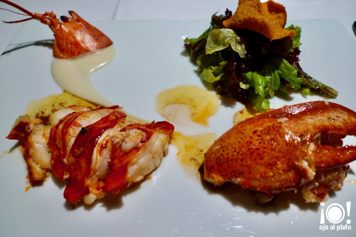El primer plato fue una ensalada de bogavante exquisita, a la par que abundante. Estos dos calificativos van a ser la nota predominante en casi todos los platos, ya que la calidad y la cantidad ha sido muy alta.