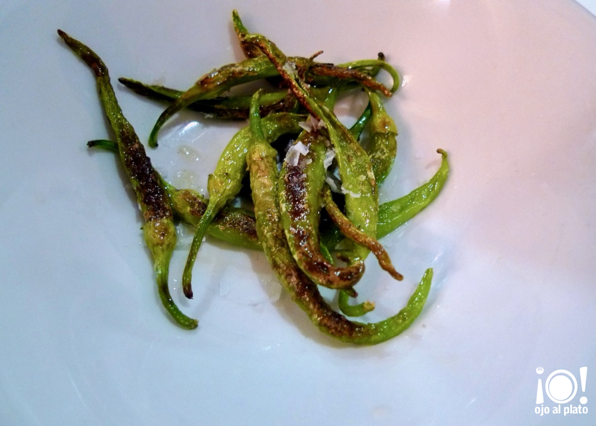 Como uno de los platos que pedí iba a tardar me trajeron de aperitivo unas piparras frescas fritas. Estaban muy ricas y me pareció un detalle original.