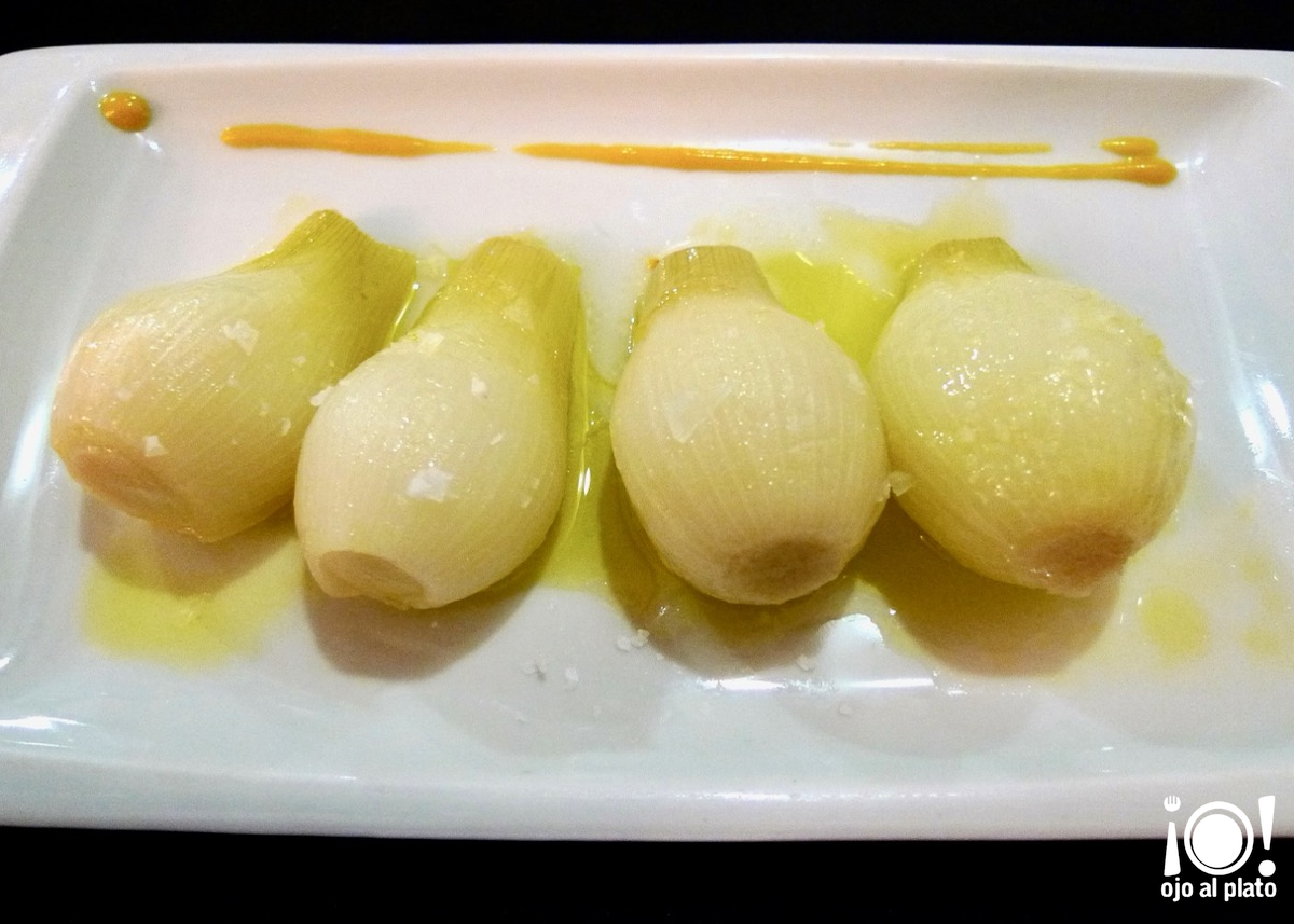 Como escuché en otra mesa que pedían unas cebollas estofadas, que no vi en la carta, aunque sí estaban, pregunté si la ración era muy grande para añadirlas a mi comanda inicial, me ofrecieron poner media ración y empecé con ellas la comida. Estaban exquisitas, bien guisadas, blanditas y jugosas, en un punto perfecto. Me encantaron.