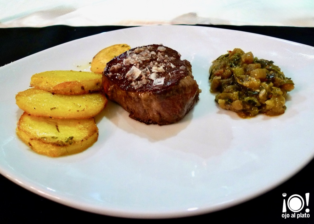 De plato principal, aunque para mí el principal fue el anterior, pedí un solomillo con guarnición. Perfecto el solomillo, en su punto, sin necesidad de haber dicho como lo quería, tampoco preguntaron. Tierno, rojo pero sin sangrar. Muy acertado.