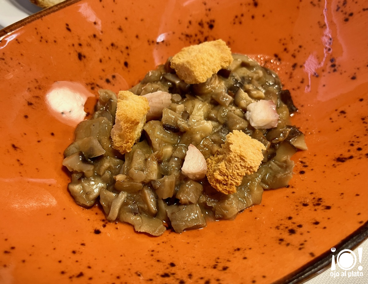Otro de los segundos que pudimos probar fue esta carrillera de ternera guisada con puré de chirivías, ajo negro y shimejis encurtidas. Melosidad y carrusel de sabores.
