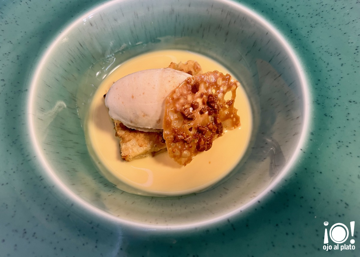 Otro de los postres fue este exquisito hojaldre templado de almendras, salsa de vainilla y helado de caramelo.