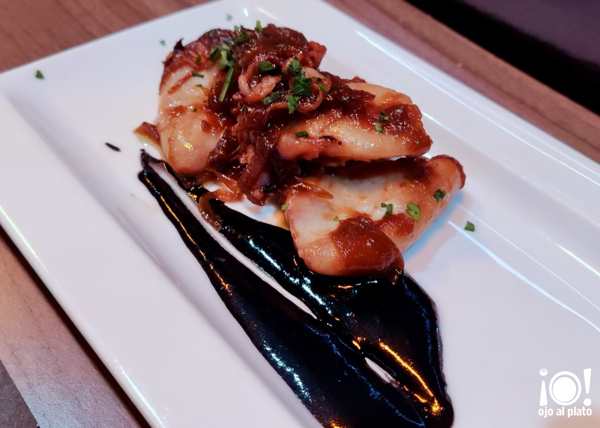 Después unos chipirones que en carta aparecen con el nombre de "Txipirón Pelayo", son unos chipirones encebollados acompañados con una salsa de tinta.