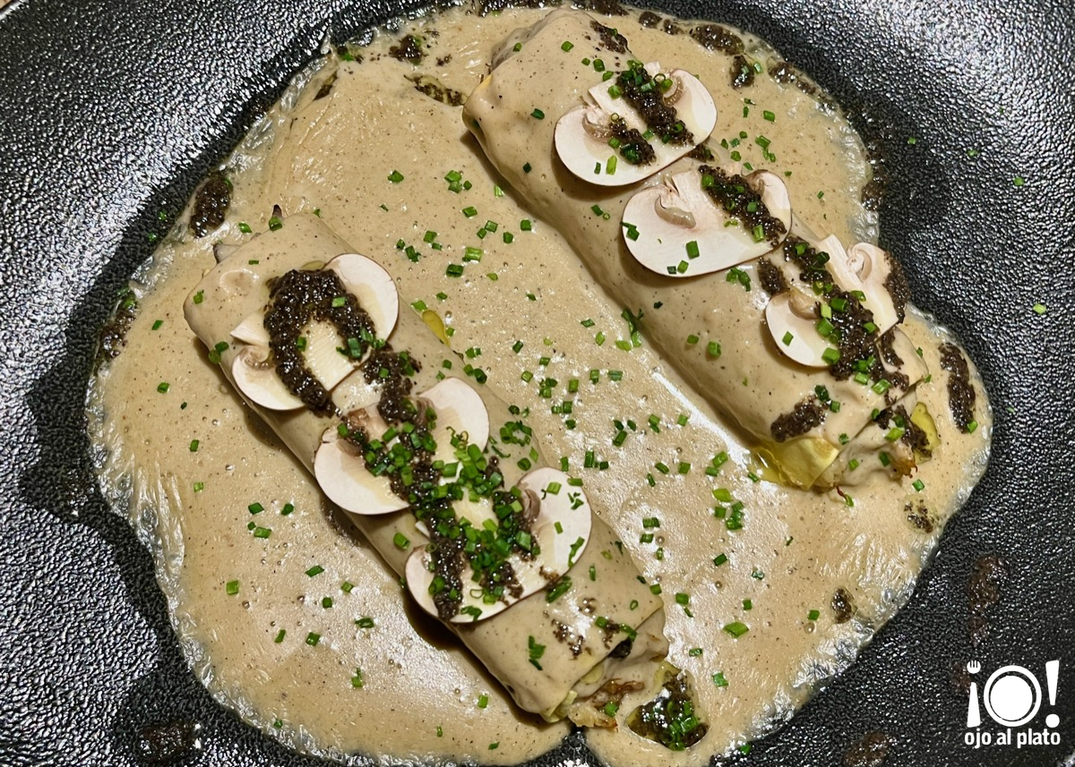 Ya sé que con este plato nos adelantamos a la Navidad, pero en aquel momento fue un antojo precoz. El canelón de carne de puchero con bechamel de trufa. Nos gustó mucho.