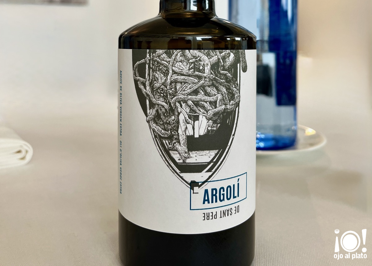 El aceite que se ofrece para degustación es de la Cooperativa de Sant Pere en Moixent. Está elaborado con las variedades Grossal, Arbequina-Blanqueta, Picual y Manzanilla. Es de un color verde dorado, como se puede apreciar en la foto de abajo, brillante, limpio y viscoso. En nariz se aprecian recuerdos de tomate, tanto del fruto como de la tomatera. En boca es muy agradable, con una sensación suave de entrada y después te deja un punto picante en la garganta. Exquisito.