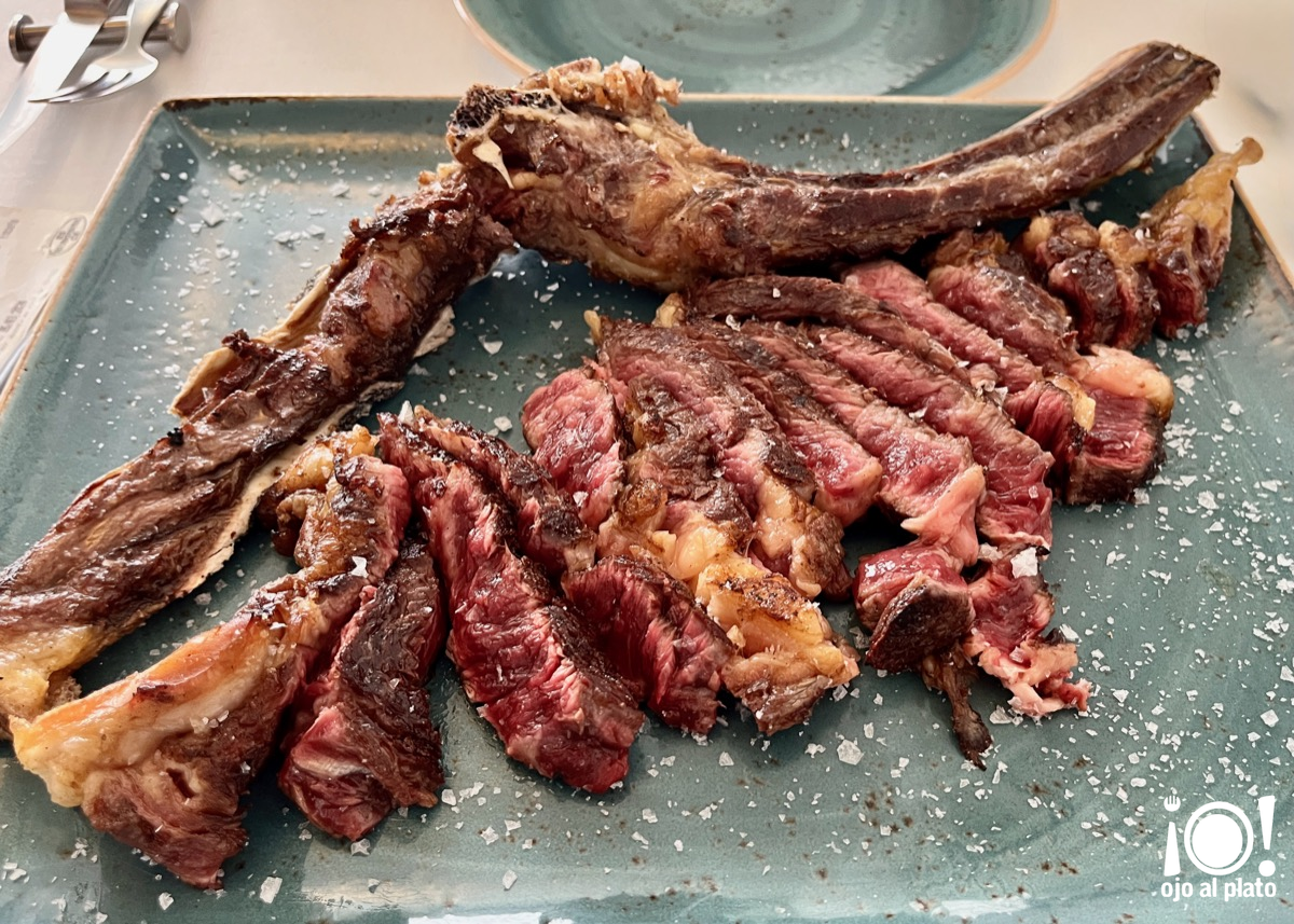 No puede faltar la chuleta de lomo alto de Luismi, categoría Premium. Esta era pequeña solo 750 gr. La calidad sobradamente contrastada y para gozar de una carne tierna y muy sabrosa.
