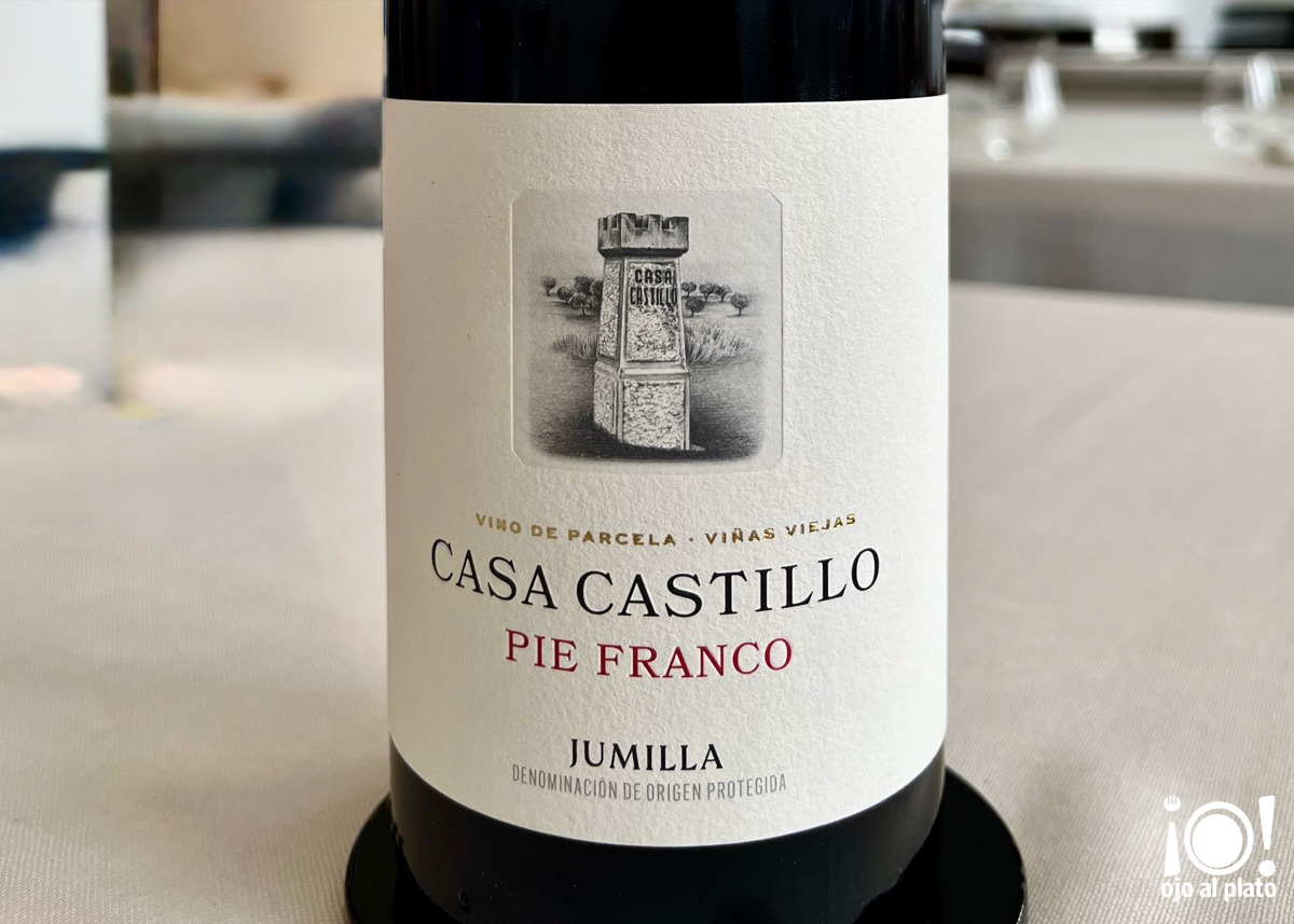 Encontrar este vino en la carta es una tentación muy fuerte. Casa Castillo Pie franco 2022. Uno de los mejores tintos del país y probablemente la mejor Monastrell de España. Proviene de una parcela llamada La Solana donde se encuentra una plantación de Monastrell a pie franco plantada en el año 1941. Despliega una intensidad única desde la primera impresión. Este vino tinto de color picota oscuro y borde granate cautiva con sus aromas de frutas como moras y cerezas muy maduras, con un toque de especias y café. Al probarlo, se percibe una gran potencia bien equilibrada, donde predomina la fruta madura sobre ligeros toques tostados. Sus taninos pulidos aseguran un final largo e inolvidable. Se disfruta porque combina a la perfección potencia y complejidad, ofreciendo una experiencia redonda y persistente en cada trago. Es, de momento, el único vino de Jumilla que ha conseguido alcanzar los 100 puntos Parker, lo hizo en la añada 2020.
