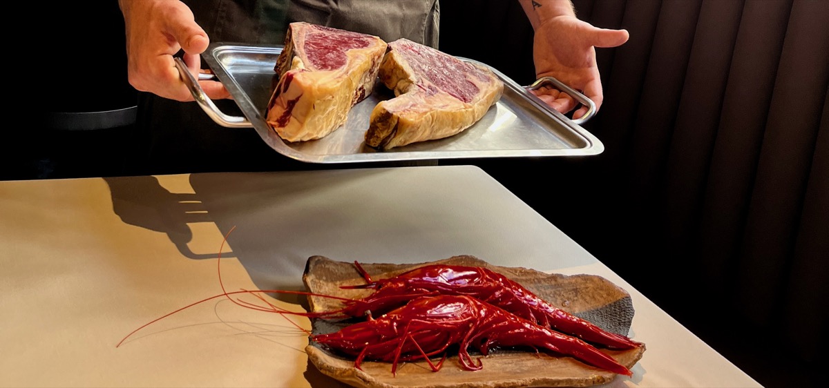 Un restaurante en el que su principal medio de cocción son las brasas, con una materia prima de excelente calidad, un respeto absoluto por el producto y unas preparaciones sorprendentes. Todo lo que puede ir a la brasa pasa por la parrilla, desde un carabinero, hasta el steak tartare y por supuesto los pescados, en piezas enteras, lo que se puede hacer de esta manera, se hace. La vajilla te enamorará, está elaborada por Cuit Espai Ceràmic de Valencia. Hay un equipo que funciona como un reloj, con cohesión, entusiasmo, profesionalidad y elegancia. El menú ideal y largo, para no dejarte nada importante por probar: gilda a tres, croqueta de jamón, anchoa sobada con mantequilla de Calaveruela, tortilla de bacalao Flama, steak tartare, rodaballo a la brasa y de postre naranja.