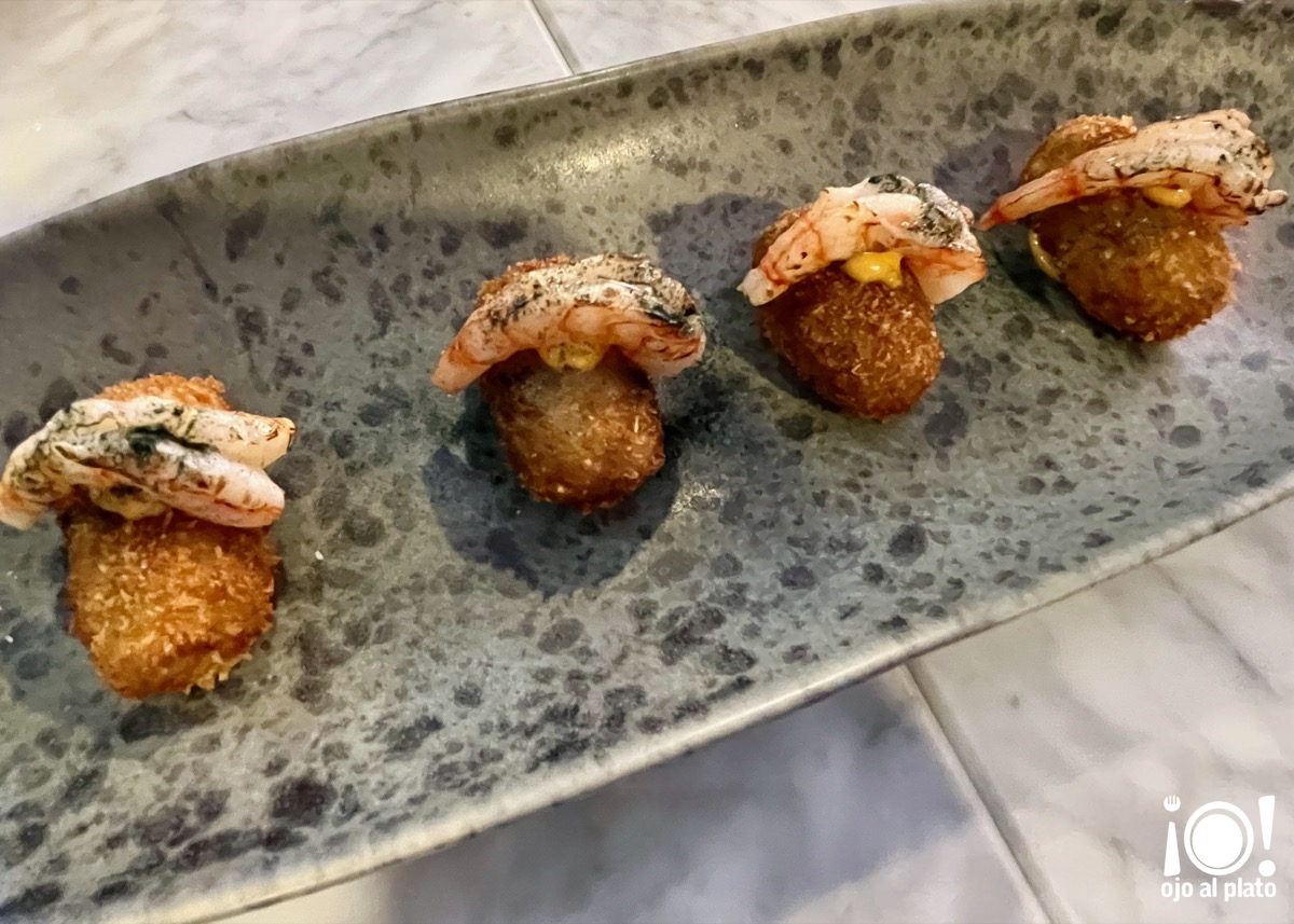 La llegada de la "Croqueta de gamba roja, mayonesa picante y espirulina" siempre es una fiesta, es esencial pedirla siempre. Sabe realmente a lo que promete y está muy, pero que muy buena.