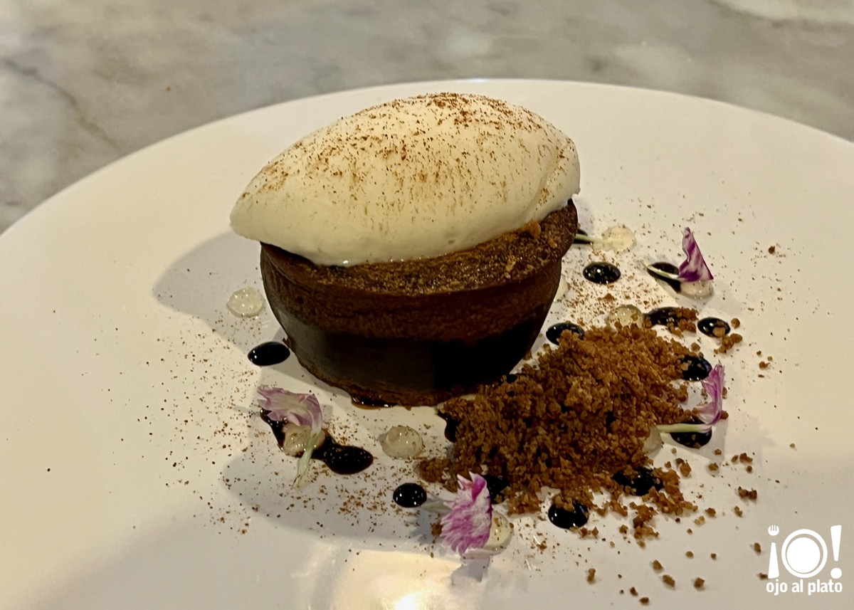 Estábamos golosos y probamos todos los postres. Este es la versión particular que hacen del Cremaet. Lleva un bizcocho de café, helado de ron, gel de limón, reducción de café y crumble de canela. Una originalidad que hay que tener en cuenta.